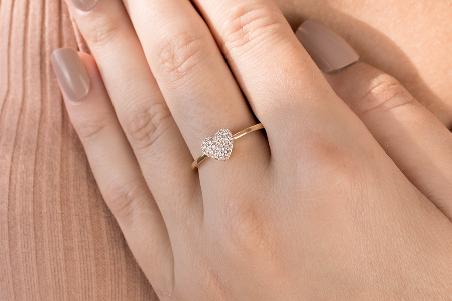 ANEL BANHADO EM OURO CORAÇÃO 7mm ALTURA E ZIRCÔNIAS BRANCAS OU COLORIDAS
