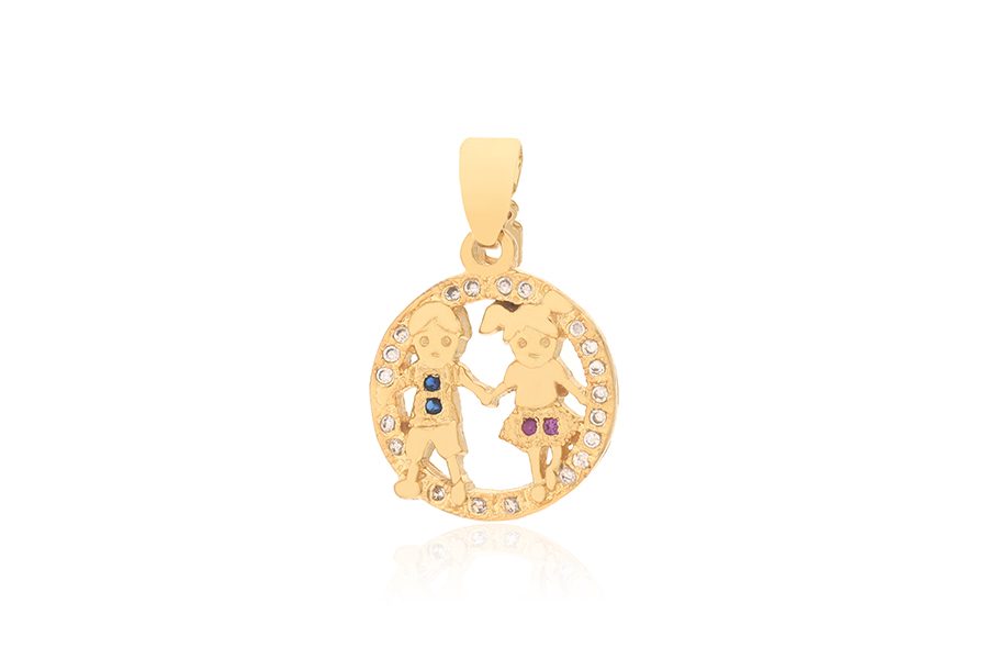 PINGENTE BANHADO EM OURO, MENINO E MENINA, COM ZIRCÔNIAS