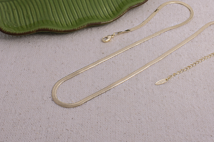 CORRENTE BANHADA EM OURO, ELO LACRAIA LAMINADA 3mm, 43cm DE COMPRIMENTO, EXTENSOR 5cm COMPRIMENTO E PESO 6g