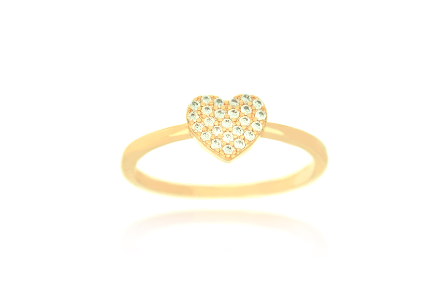 ANEL BANHADO EM OURO CORAÇÃO 7mm ALTURA E ZIRCÔNIAS BRANCAS OU COLORIDAS