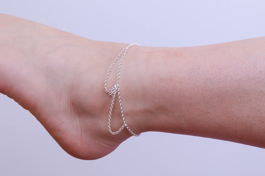TORNOZELEIRA BANHADA EM PRATA LEVE, ELO PORTUGUÊS 2,50mm, 24cm COMPRIMENTO, EXTENSOR 4cm E FLOR
