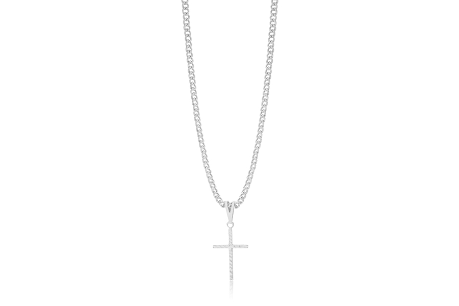 GARGANTILHA BANHADA EM PRATA LEVE, ELO GRUMET 2mm, 60cm COMPRIMENTO E CRUZ 19x11mm